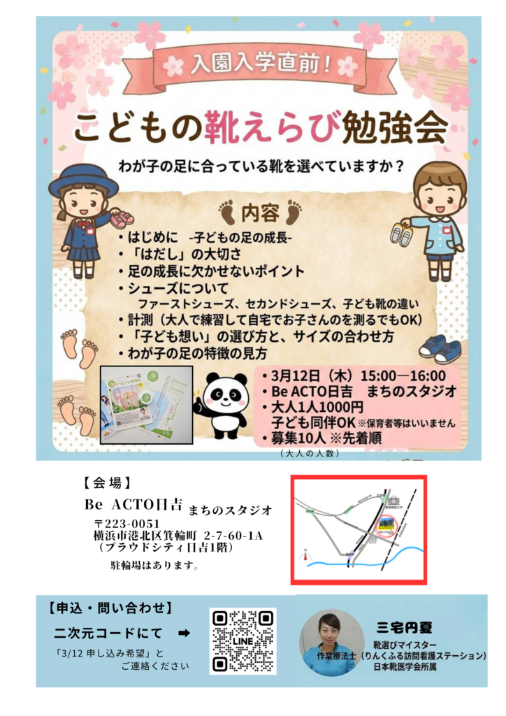 入園・入学を控えたこの時期に、足の発達や靴の選び方を分かりやすくお伝えします。