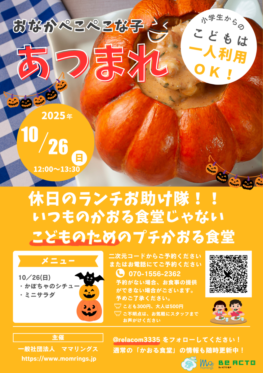 夏休み企画に引き続き「プチかおる食堂」を開催いたします。