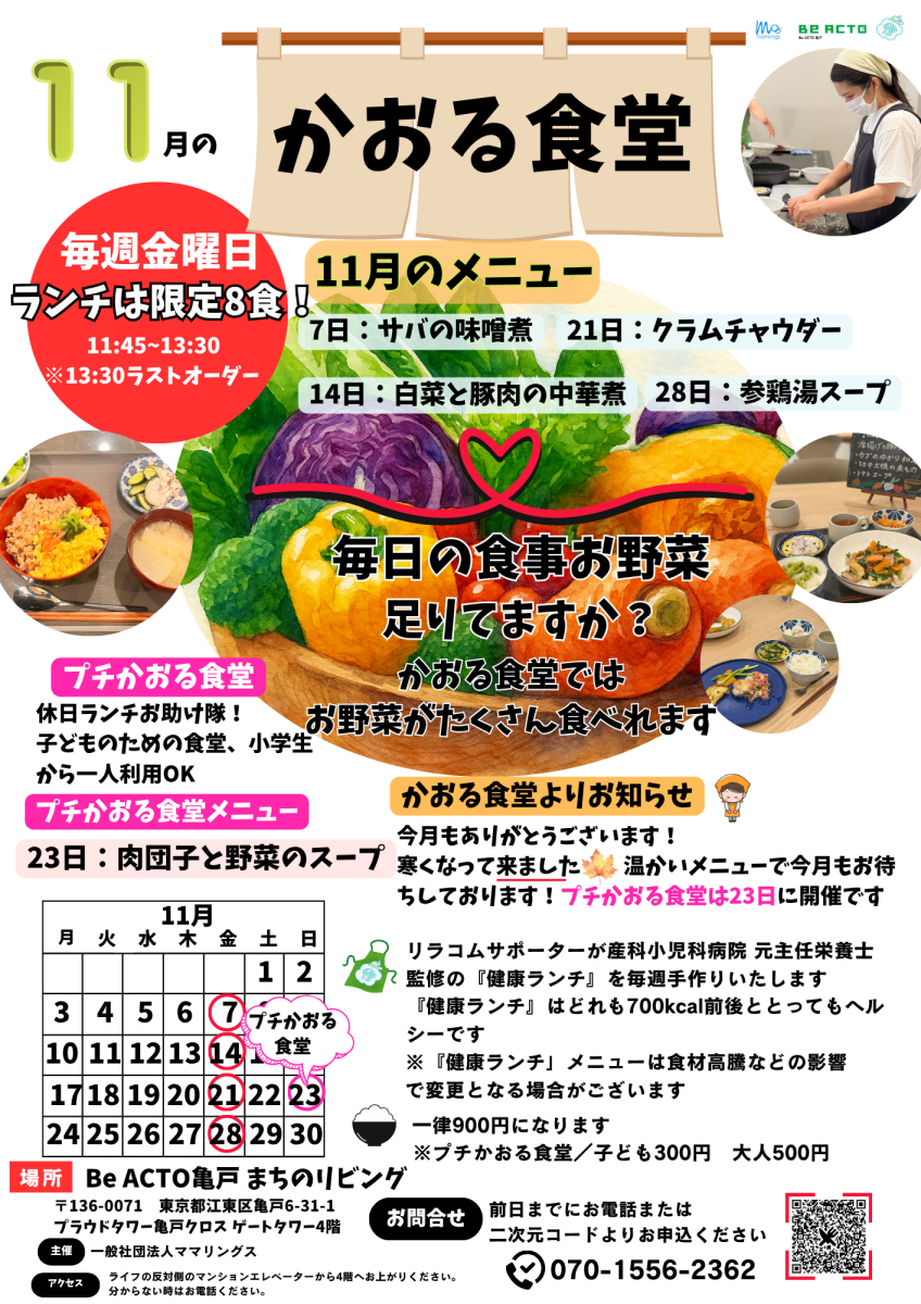 11月23日(日)は「プチかおる食堂」を開催!