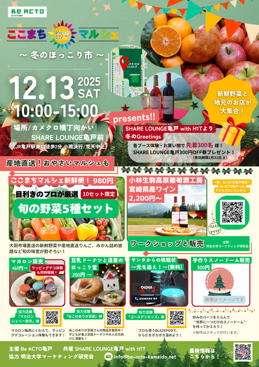 12 月 13 日(土)ここまちマルシェ 〜 冬のほっこり市 〜 開催!