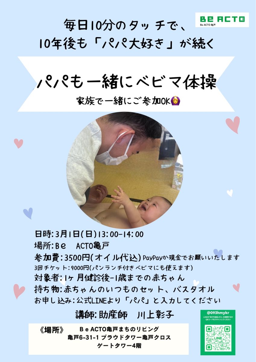 パパも沢山触れ合い、赤ちゃんの可愛いや成長を沢山感じてください。